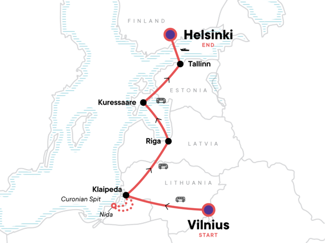 Explore the charming and enigmatic Baltic countries, ride a bike around the coastal dunes of Lithuania's Curonian Spit, picnic in beautiful Riga, live like a local on a farm in Estonia, wander the charming streets of Helsinki.