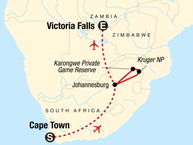 Please note that this trip is a combination of multiple G Adventures tours (Cape Town, Kruger, Livingstone). As such, the staff and/or particular vehicles operating your tour may change between tour segments. You may also expect some group members to join or leave the tour, between tour segments. Please note that there are no activities planned during your stay in Cape Town or Livingstone.