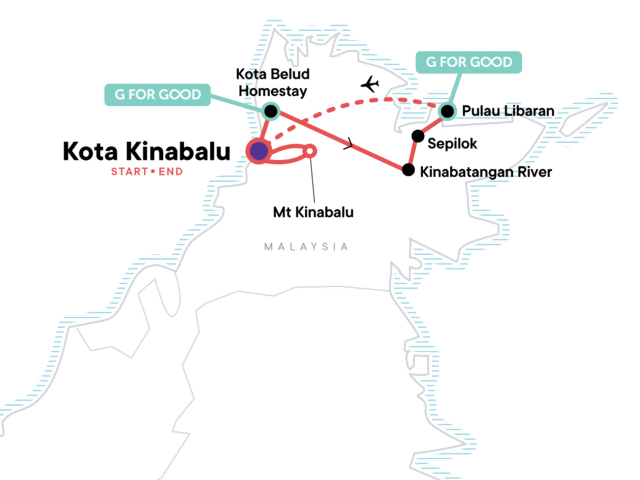 To reach the G Adventures joining point hotel in Kota Kinabalu take a public taxi from the airport - there is a pre-paid taxi booth directly outside the arrival hall. Taxis are cheap, safe and reliable. Expect to pay around RM15-20.