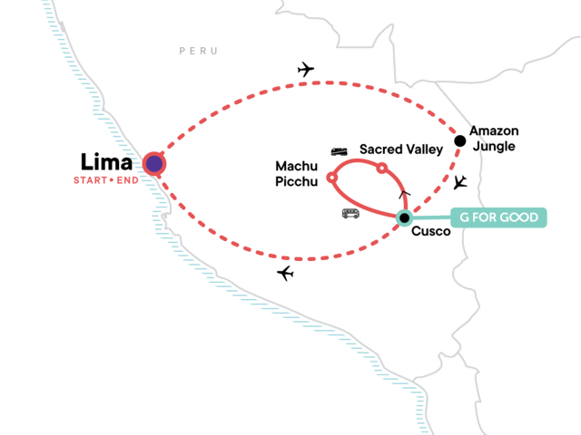 Your G for Good Moment: Ccaccaccollo Community and Women's Weaving Co-op visit, Ccaccaccollo. Amazon Jungle stay at the exclusive G Lodge Amazon (2 nts). Guided excursions with naturalists. Rubber boot use. Machu Picchu guided tour. Internal flights. All transport between destinations and to/from included activities.