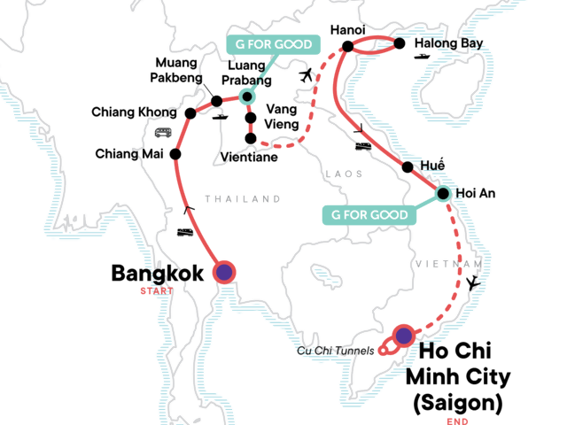 See the highlights of Indochina on this epic 22-day adventure. Explore the vibrant cityscape of Bangkok, marvel at the majestic granite peak of Doi Suthep, and savour pad thai in Chiang Mai. Shop for souvenirs in Ho Chi Minh City and join the locals sipping coffee at a lakeside café in Hanoi. This adventure is the perfect balance between have-to-see highlights and free time to venture out on your own.