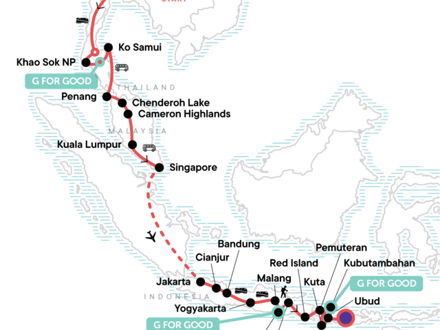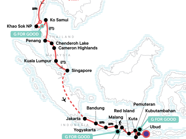 Now's the time to explore Thailand, Indonesia, and beyond on your terms with this tour that's affordable for young travellers. Bliss out on world-class Thai beaches, cool off in the Cameron Highlands of Malaysia, savour the street food and nightlife of Singapore, and breathe in some laid-back vibes among Bandung's waterfalls and hot springs, all before stretching your legs and hiking the Ancestor Trail to Mt Bromo. In this part of the world, you'll get to focus on your own adventure: pack your trip with everything you want and nothing you don't.